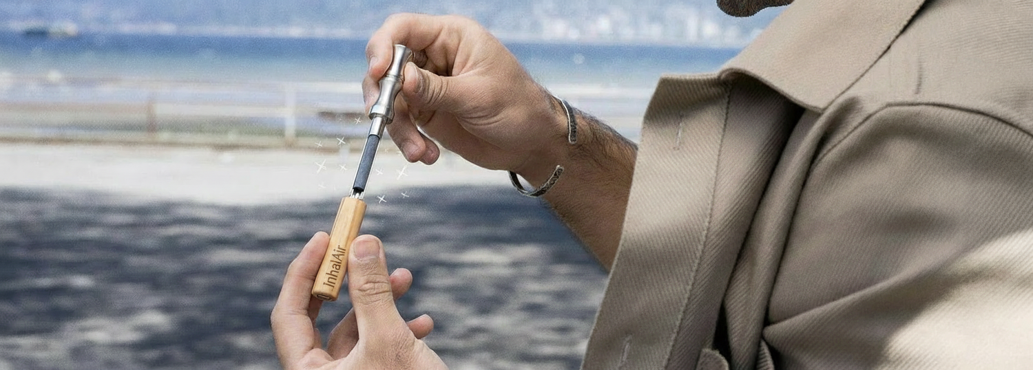 Chez InhalAir, nous nous engageons à aider les individus à mieux respirer et à vivre une vie plus saine en offrant un inhalateur naturel et non addictif qui remplace l’habitude nocive de fumer.